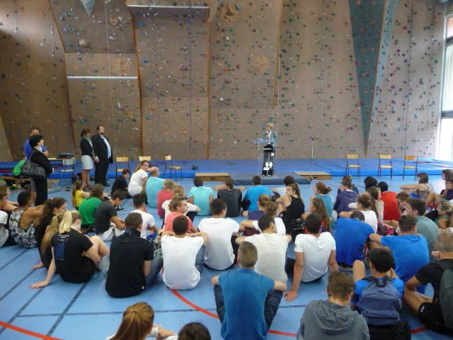 Madame le Recteur d'académie a fait le tour des ateliers et prononcé un discours en fin d’événement, évoquant notamment l'obtention par le lycée du label "Lycée sportif".
